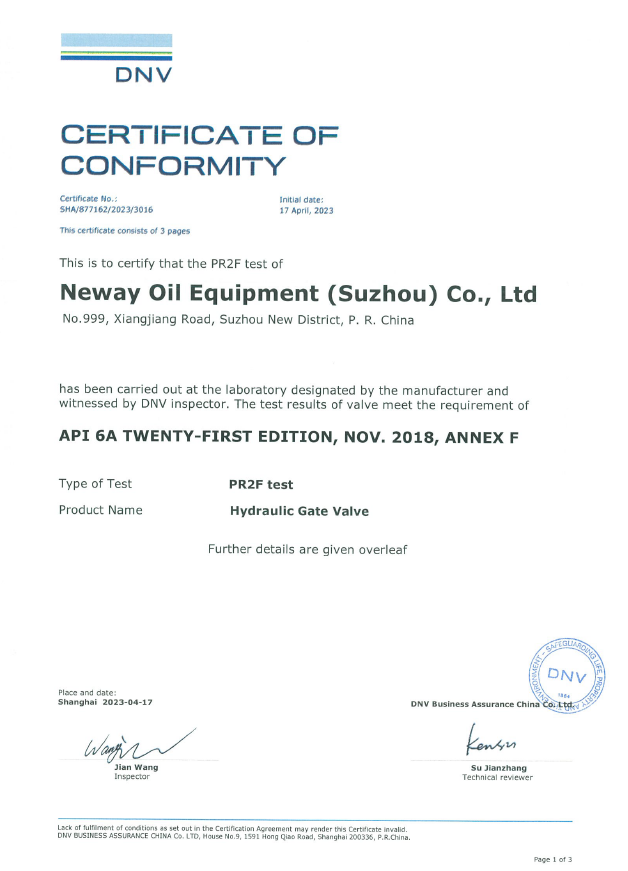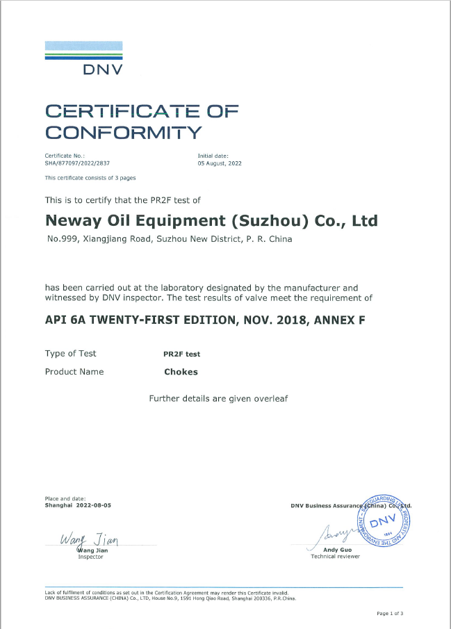 Choke Valve-PR2F Certificate