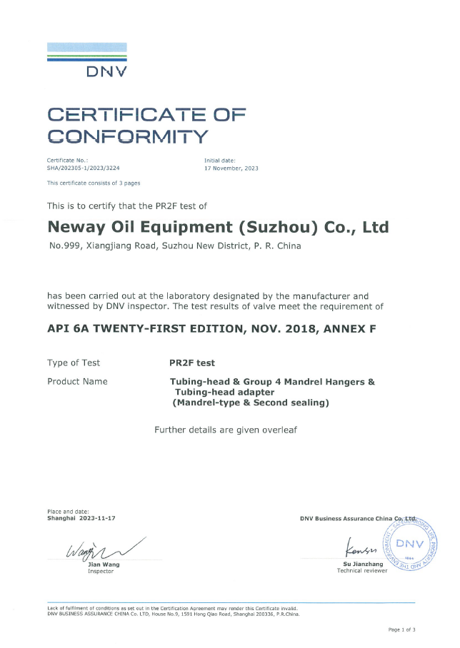 Wellhead and Christmas Tree -PR2 Certificate