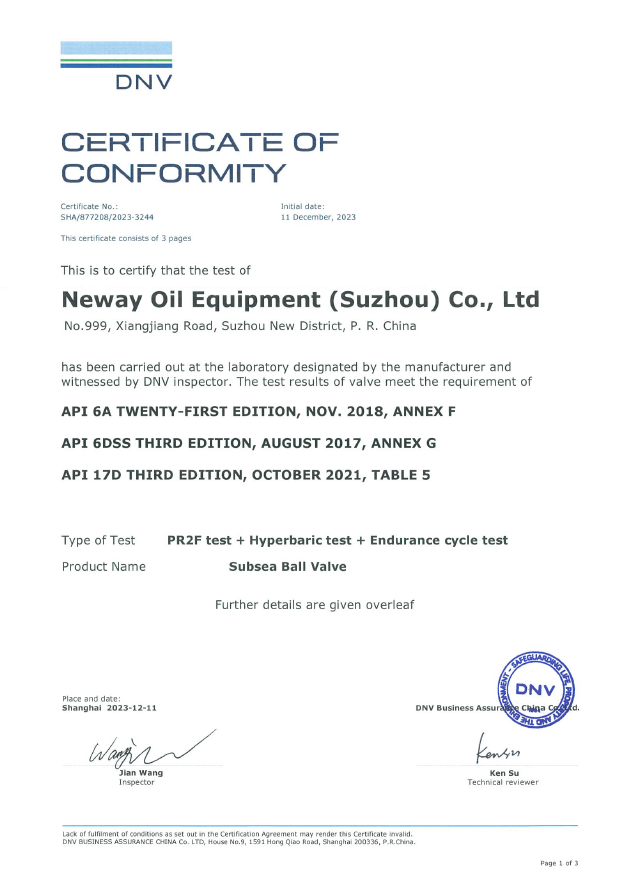 Subsea Ball Valve-PR2F Certificate