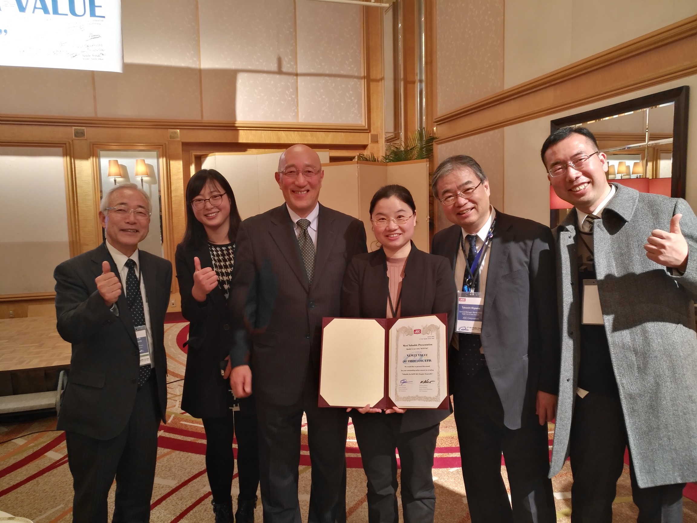 2017年1月19日紐威應邀參加了日本工程公司JGC(日揮)在其橫濱總部舉辦的第二屆質量論壇,本屆論壇邀請了全球各行業(yè)的制造商參加,包括GE、西門子、斗山、KITZ等知名企業(yè),獲邀請參加的中國廠家有紐威閥門、上海森松、久立特材三家。 另外,JGC還邀請了Shell日本、AramcoAsia日本、印尼國家石油、新加坡石化、阿爾及利亞國家石油等業(yè)主的高層代表出席。 在論壇的主要環(huán)節(jié)“供應商質量改進經驗分享”中,共有16家企業(yè)分享了自已的質量管理經驗,經由全體參會成員投票表決,紐威團隊憑借開放務實的企業(yè)文化、嚴肅認真的細節(jié)管理、極具創(chuàng)意的質量活動撥得頭籌,被授予了本屆論壇設置的唯一獎項 ---“最具價值展示”稱號。 自2014年12月與JGC進行首次質量文化交流之后,紐威一直積極推進質量持續(xù)改進活動,擁有約90年歷史的JGC也十分關注紐威的變化,與紐威保持積極互動并分享其豐富的行業(yè)經驗。此次紐威的成果展示全部取材與過去2年內的質量改進實踐活動,獲得本屆MVP是JGC及業(yè)內各方對紐威進步的認可,也是推動紐威繼續(xù)前行的積極動力! 紐威的目標不僅是在短期成果的展示上,更為重要的是要保持長期的持續(xù)改進,成為客戶目錄中,具有價值的供應商之一!